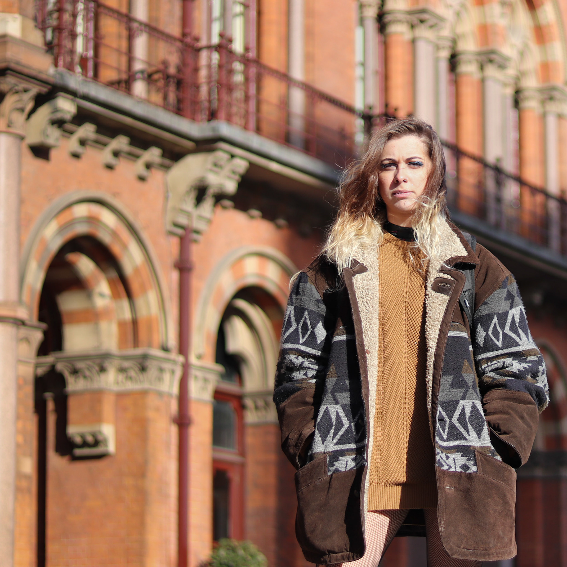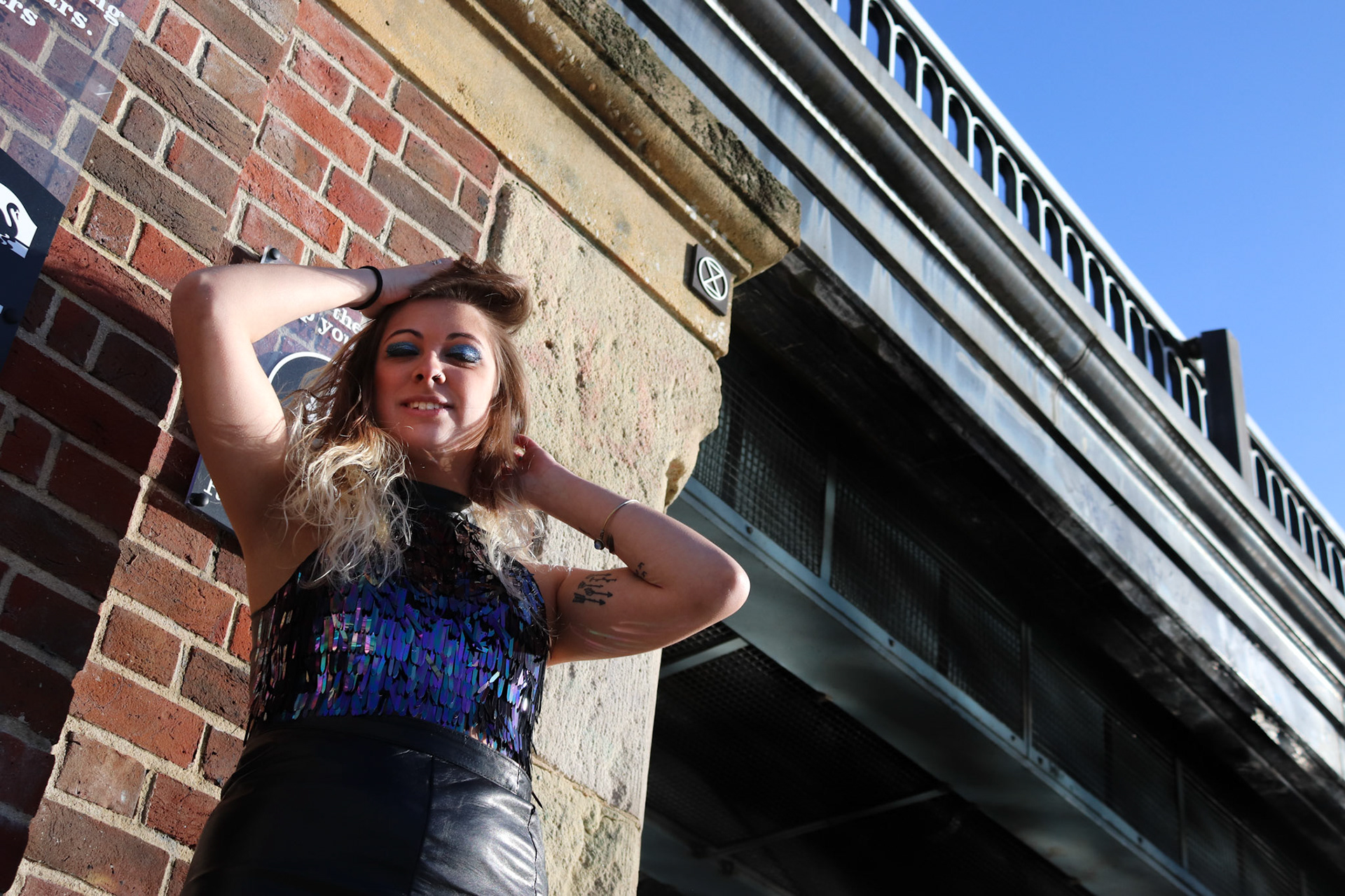 Commissioned photoshoot by model and singer Lara Elliot, February 2018. Sparkly top from Missguided, skirt from Urban Outfitters, jumper from Primark and boots from Dr. Martens.